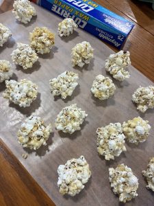 During workshops, this is where everyone gets giggly. There is no wrong way to shape a popcorn ball, and somehow every person ends up with a “favorite one” they made.