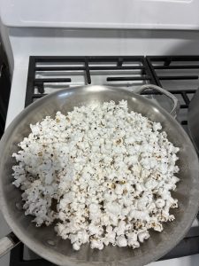 We start with a big bowl of freshly popped popcorn. This is the foundation of the recipe, so we always make sure it’s fluffy and clean of unpopped kernels (because nothing ruins the vibe like biting into a “tooth-breaker”).