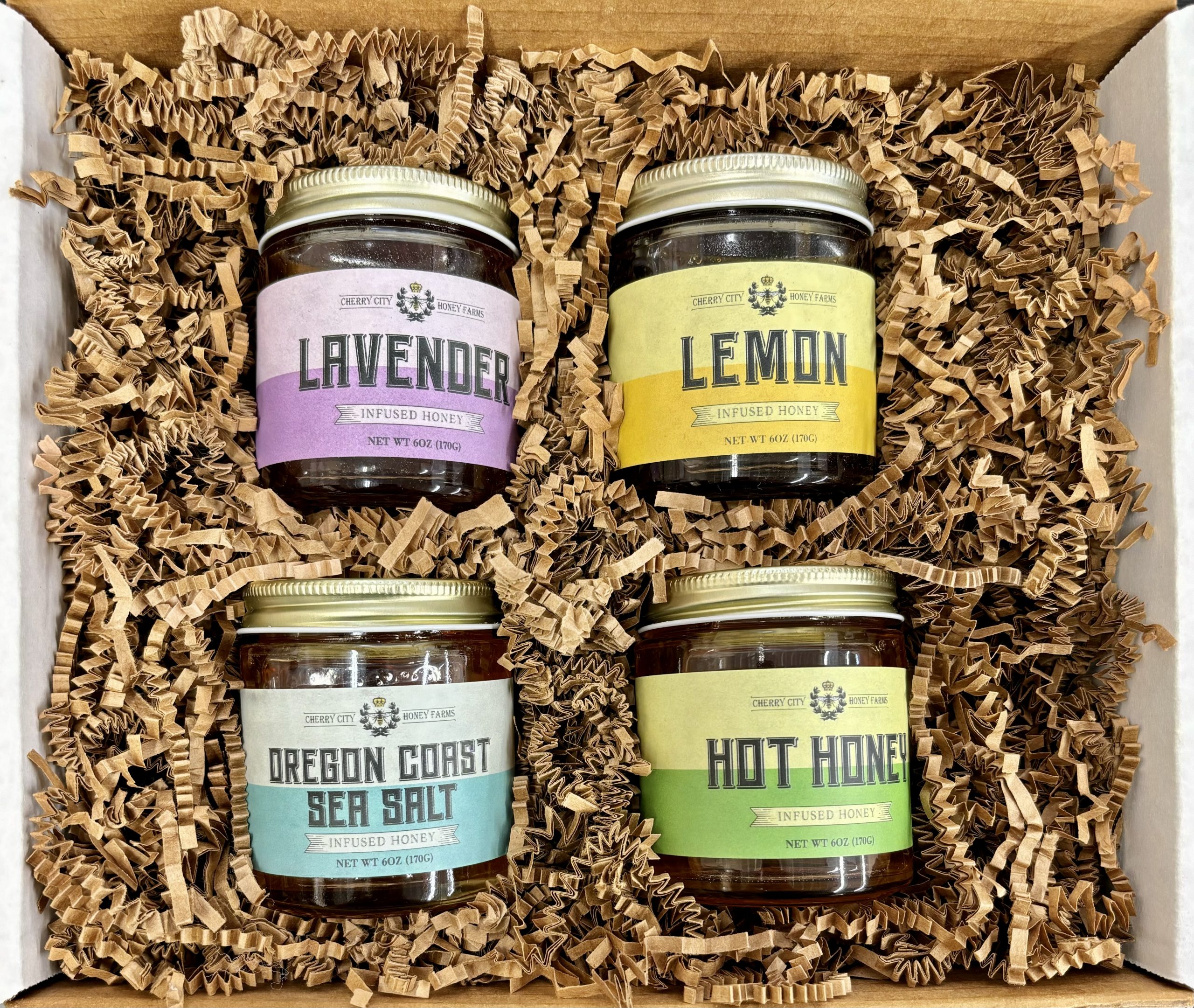 Our Build a Box of 4 is the perfect gift for any honey lover, allowing you to handpick four jars of our 6-ounce specialty honeys to create a custom gift box. This popular option lets you choose from a delicious selection of creamed and infused honeys, each crafted to add unique flavor to teas, spreads, or recipes. Whether you’re gifting for a holiday, birthday, or special occasion, this personalized box offers a thoughtful, flavorful experience tailored to the recipient’s tastes.