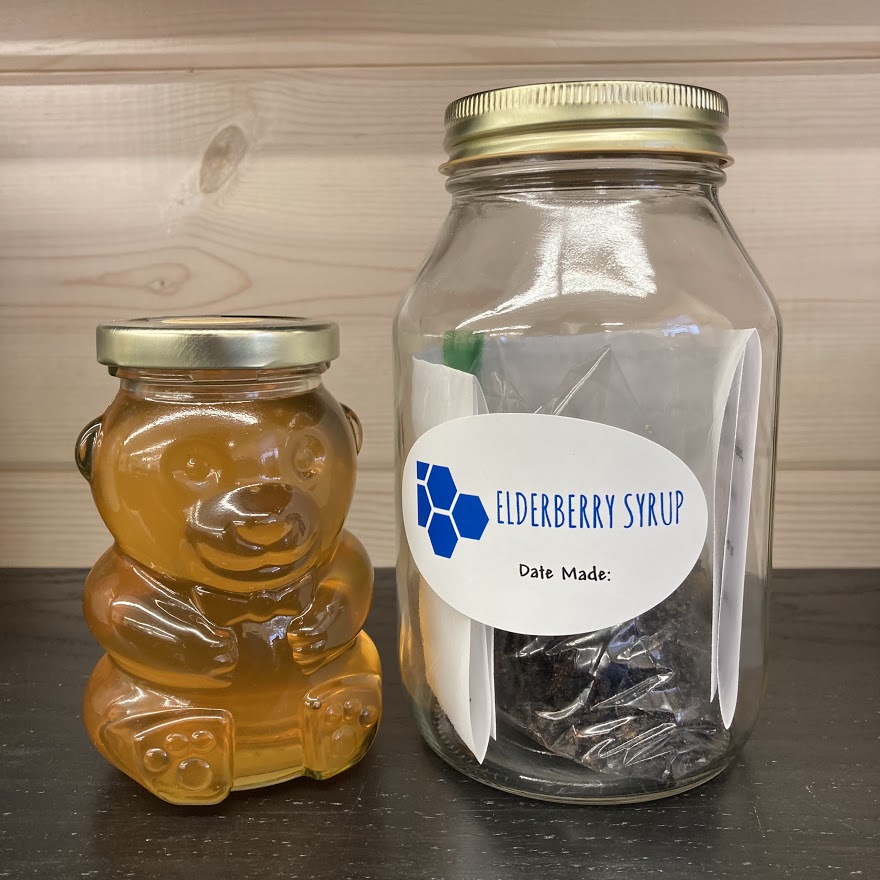 It comes with all organic ingredients including Dried Elderberries, Ceylon Cinnamon, Ground Ginger and Ground Cloves. A cute glass Bear holds the exact amount of honey for your syrup.